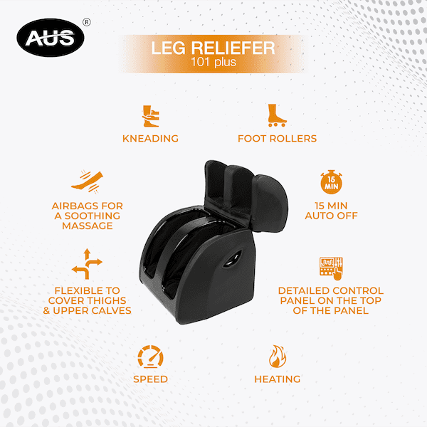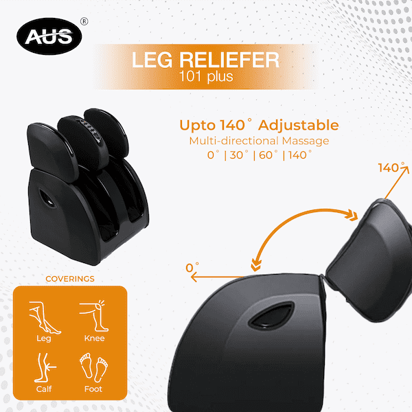 [vc_row content_placement=”middle” woodmart_css_id=”62a9a9e637da4″ responsive_spacing=”eyJwYXJhbV90eXBlIjoid29vZG1hcnRfcmVzcG9uc2l2ZV9zcGFjaW5nIiwic2VsZWN0b3JfaWQiOiI2MmE5YTllNjM3ZGE0Iiwic2hvcnRjb2RlIjoidmNfcm93IiwiZGF0YSI6eyJ0YWJsZXQiOnt9LCJtb2JpbGUiOnt9fX0=” mobile_bg_img_hidden=”no” tablet_bg_img_hidden=”no” woodmart_parallax=”0″ woodmart_gradient_switch=”no” woodmart_box_shadow=”no” wd_z_index=”no” woodmart_disable_overflow=”0″ row_reverse_mobile=”0″ row_reverse_tablet=”0″][vc_column width=”2/3″ offset=”vc_col-md-6″][woodmart_title size=”small” align=”left” title=”Leg Reliever 101″ woodmart_css_id=”6312e9e8bd2a8″ responsive_spacing=”eyJwYXJhbV90eXBlIjoid29vZG1hcnRfcmVzcG9uc2l2ZV9zcGFjaW5nIiwic2VsZWN0b3JfaWQiOiI2MzEyZTllOGJkMmE4Iiwic2hvcnRjb2RlIjoid29vZG1hcnRfdGl0bGUiLCJkYXRhIjp7InRhYmxldCI6e30sIm1vYmlsZSI6e319fQ==”][woodmart_text_block woodmart_css_id=”6312ea2e18d85″ parallax_scroll=”no” woodmart_inline=”no” wd_hide_on_desktop=”no” wd_hide_on_tablet_landscape=”no” wd_hide_on_tablet=”no” wd_hide_on_mobile=”no” responsive_spacing=”eyJwYXJhbV90eXBlIjoid29vZG1hcnRfcmVzcG9uc2l2ZV9zcGFjaW5nIiwic2VsZWN0b3JfaWQiOiI2MzEyZWEyZTE4ZDg1Iiwic2hvcnRjb2RlIjoid29vZG1hcnRfdGV4dF9ibG9jayIsImRhdGEiOnsidGFibGV0Ijp7fSwibW9iaWxlIjp7fX19″]AUS Leg Reliever 101 Plus comes with multiple airbags to relax your tired legs. It gives massage through air bag pressure along with heat for better acceleration of the therapy. Its upper half part can be tilted140 degrees for covering your thighs.