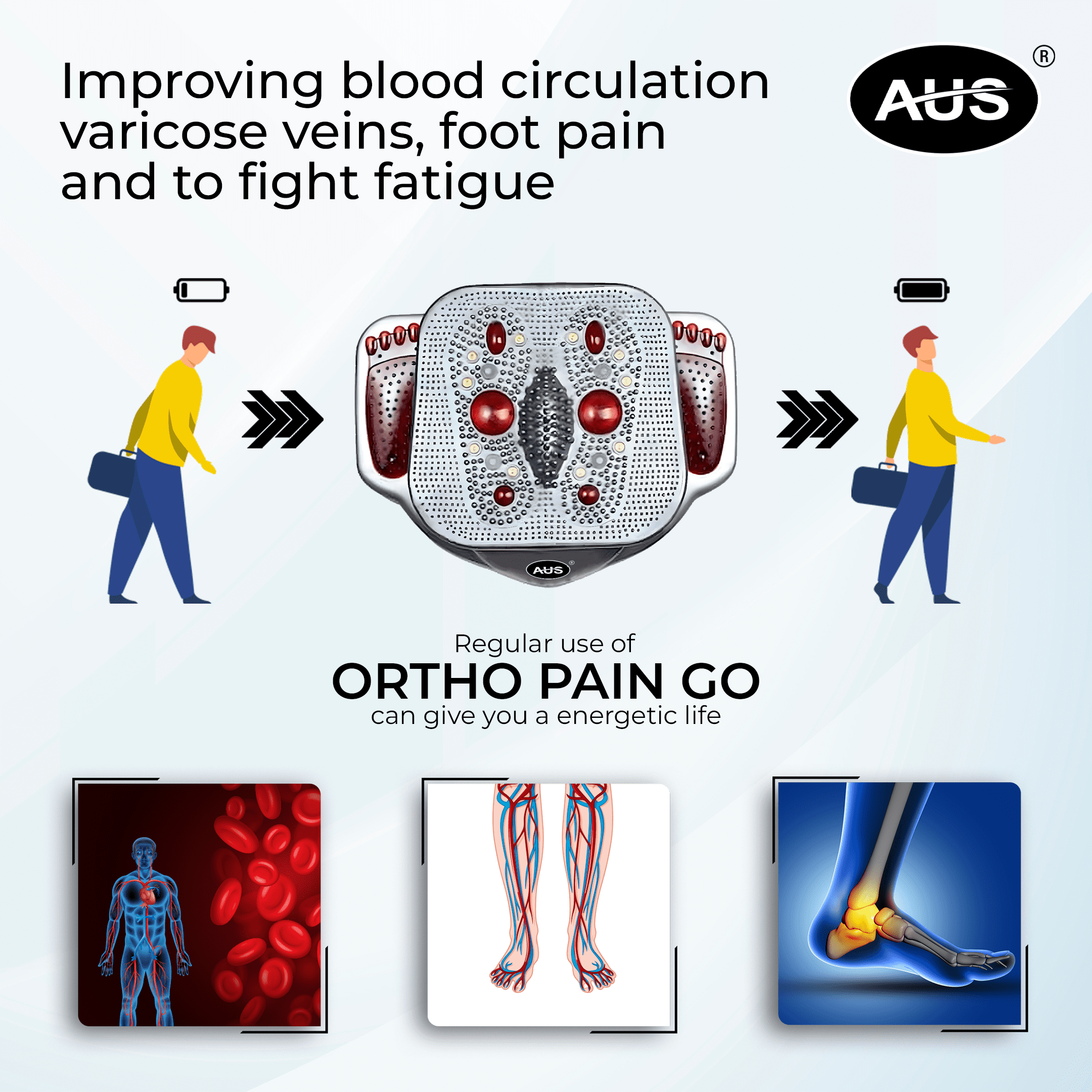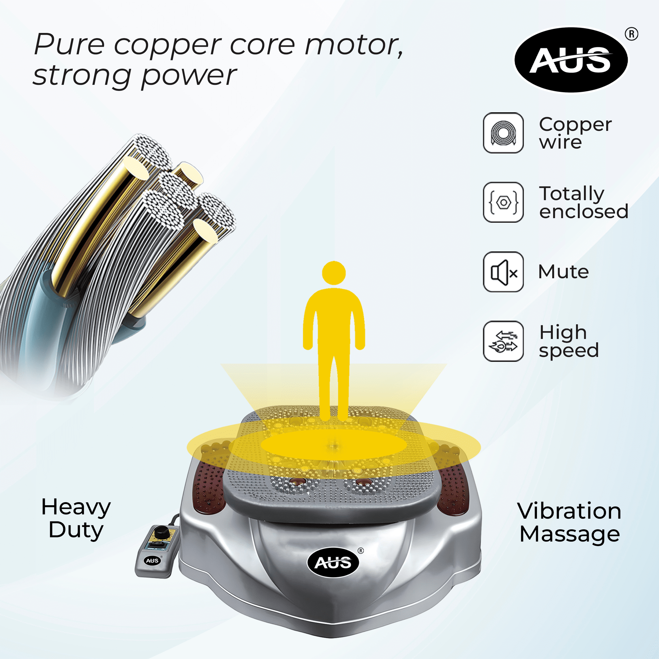 AUS Ortho Pain Go’s intense vibration offers the most relaxing feeling. This machine’s Thunder Copper Motor has the ability to transmit the vibration massage from your foot to your higher head region. It can ease your stiff muscles, fatigue, knee and calf discomfort, constipation, high blood pressure, and a host of other disorders.